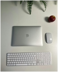 Modern minimalist workspace setup featuring smartp
