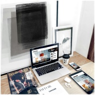 Stylish workspace with a laptop, smartphone, and magazine on a desk. Ideal for digital nomads.