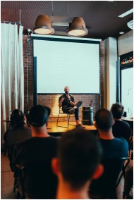 Speaker engages an audience during a business semi