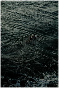 A lone surfer paddles through the dark waves, prep