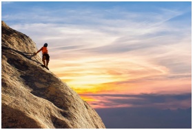 Climber conquers rock face at sunset, embracing the thrill and challenge.