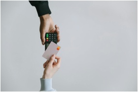 Modern contactless payment using a card and terminal, highlighting the ease of digital transactions.