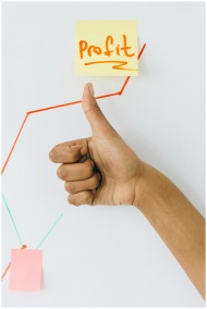 A hand giving a thumbs up in front of a profit gro