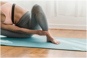 Woman practicing yoga indoors, focusing on flexibi