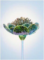 A stunning 3D glass-effect flower highlighting technology and abstract design.