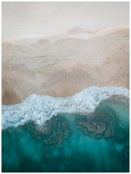 A stunning aerial view showcasing a sandy beach meeting the turquoise ocean waves. Perfect for travel and nature themes.