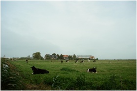 Scenic view of cows grazing on a peaceful farm in Amsterdam, Netherlands.