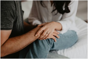 A tender moment of a couple holding hands, symbolizing love and connection.