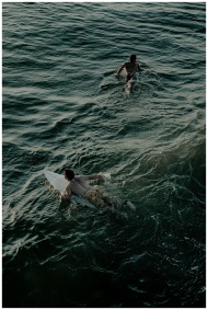 Two surfers paddle out in the ocean waves, enjoying a day of adventure and water sports.