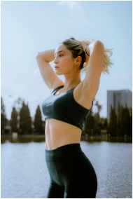 A woman exercising by a lake in Ciudad de México, wearing sports attire.