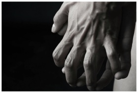 Monochrome close-up of intertwined hands, showcasi