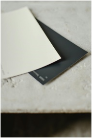 Two color swatches on a textured surface with a minimalist aesthetic, captured in a vertical close-up.