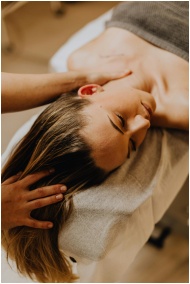 A serene massage therapy session focusing on neck and head relaxation.