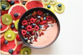 Colorful smoothie bowl with berries and tropical f