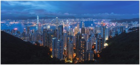 A breathtaking view of Hong Kong's illuminated skyline at night from Victoria Peak.