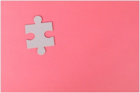 A single puzzle piece set against a vibrant pink b