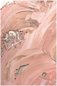 Close-up of a textured pink and beige abstract art piece with swirls and brush strokes.