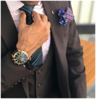 Elegant close-up of a man in a designer suit adjus