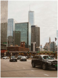 Bustling Chicago street with cars and skyscrapers