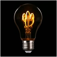 Close-up of an illuminated Edison-style light bulb on a dark background.