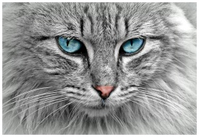 Stunning close-up of a grey cat with mesmerizing b