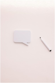 White speech bubble cutout and marker on a light b