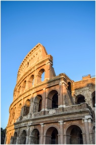 Capture of the iconic Colosseum in Rome with clear blue skies, highlighting its historic architecture.