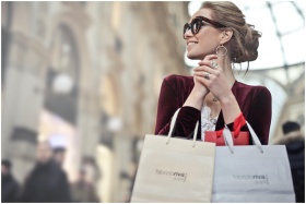 Stylish woman with shopping bags in Galleria Vitto