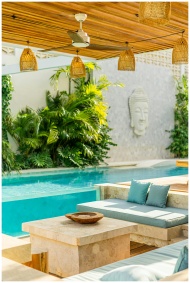 Elegant outdoor pool area featuring tropical plant