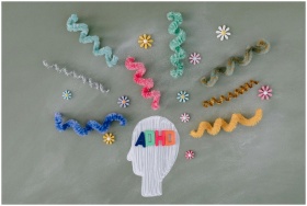 Creative illustration highlighting ADHD awareness with colorful brain imagery.