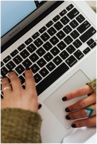 Close-up of hands typing on a MacBook Air keyboard
