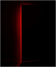 Mysterious red-lit doorway offering a peek into a