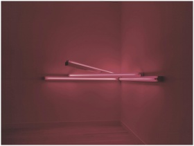 Close-up of abstract pink fluorescent light tubes against a dark background.