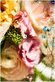 A colorful close-up of flowers with water droplets