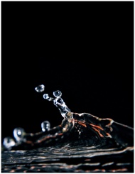 Capture of a water splash in mid-air against a dar