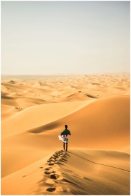 A solitary traveler walks across the vast sand dun