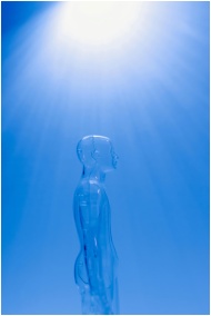 A transparent human figure under a bright blue lig
