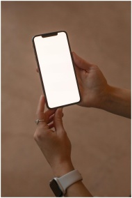 Close-up of hands holding a smartphone with a blank screen, ideal for mockups.
