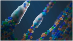 Close-up of a colorful abstract representation of DNA strands, illustrating science and genetics.
