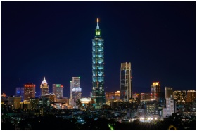 Illuminated Taipei 101 and city skyline at night s