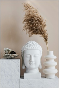 Tranquil interior scene showcasing a Buddha bust w