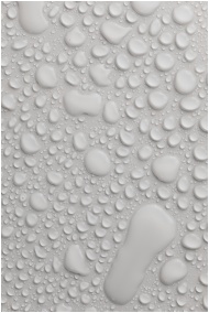 Water texture wet background of light gray color with transparent water drops of different sizes and shapes flowing down together
