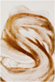 Top view flat lay composition of picture painted with brown colored sand on white paper