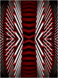 Abstract composition showcasing geometric symmetry with red and white patterns.