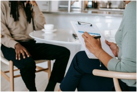 Two professionals engaged in a consultation, one t
