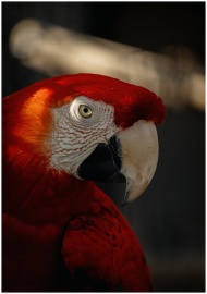 Detailed portrait of a Scarlet Macaw in Canada sho