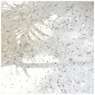 Terrazzo floor with beautiful sunlight and plant shadows creating artistic patterns.