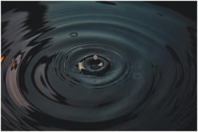 A mesmerizing splash of a water droplet creating ripples on a dark surface.