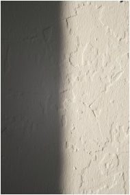 Close-up of a textured plaster wall with light and shadow creating contrast.