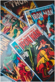 Close-up shot of vibrant vintage comic books featuring Iron Man and Thor.